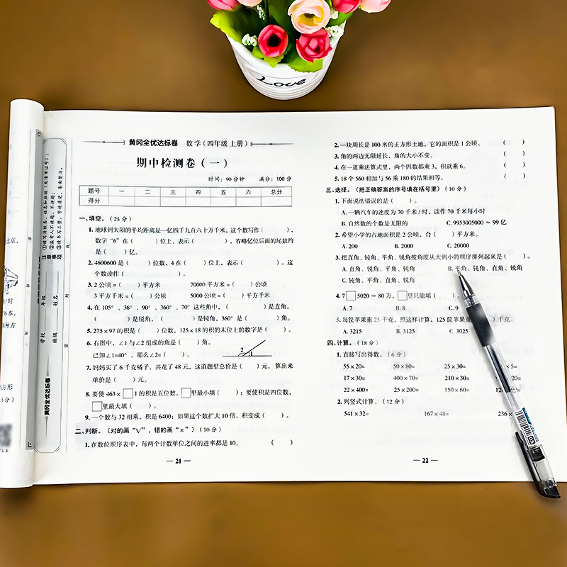 四年级上册试卷数学测试卷全套人教版 月考期中期末专项练习卷子同步训练练习册4年级上学期模拟考试冲刺100分练习题练习册 小学单元