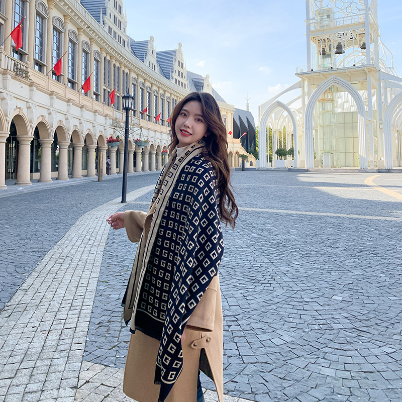 G字母时尚 韩版 百搭仿羊绒保暖大披肩围脖潮 2025新款 围巾女秋冬季