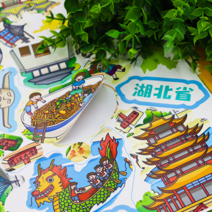 地理知识贴纸书儿童益智游戏书贴贴画专注力训练 游中国玩贴纸 0到3岁到6岁以上幼儿园启蒙认知书早教书 全套7册 赠中国地图儿童版