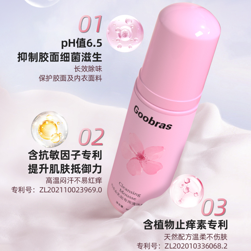 Goobras 隐形文胸乳贴专用清洗剂液花香型60ml 胸贴清洁慕斯