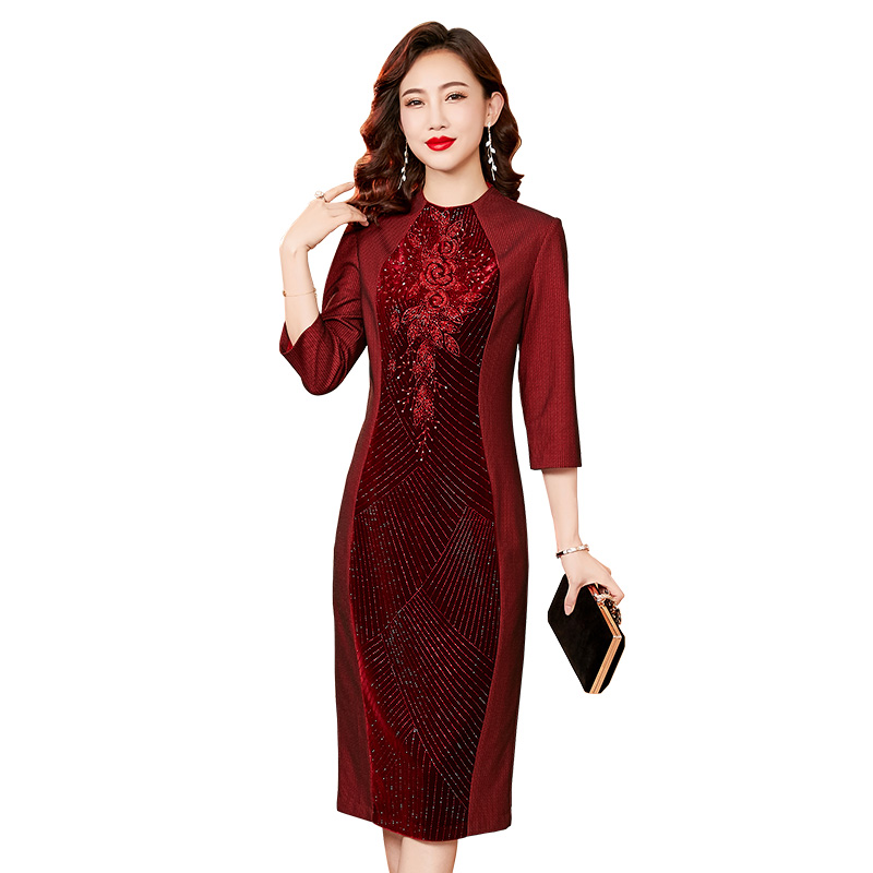 XZY 微胖mm贵气古早风钉珠挂脖连衣裙女名媛气质重工长裙 欣争艳