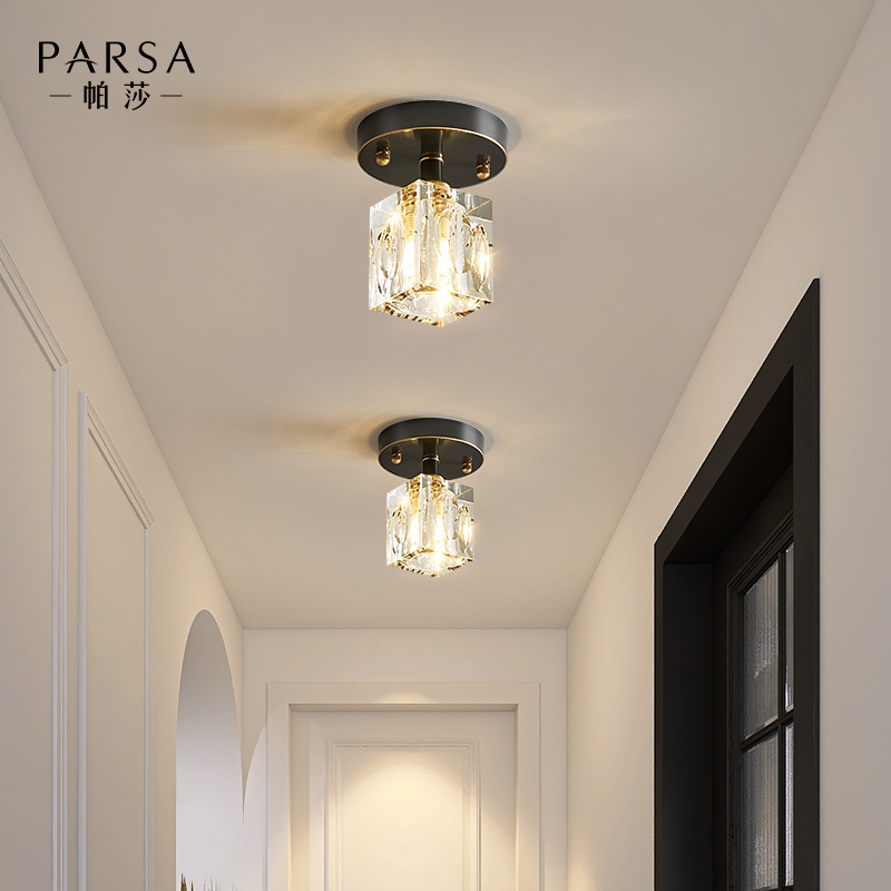 帕莎水晶过道灯轻奢全铜吸顶灯走廊灯现代简约玄关阳台衣帽间灯具