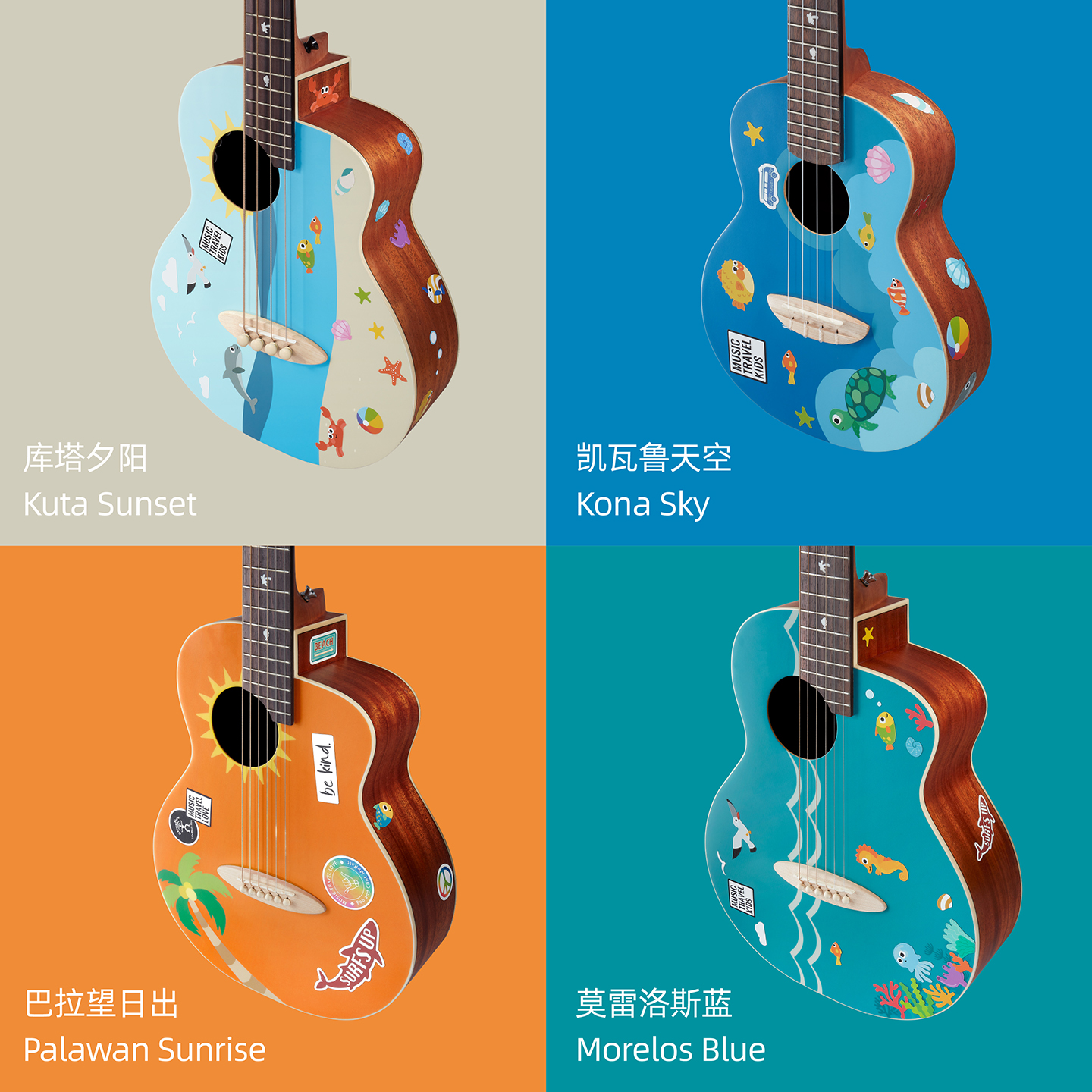 彩虹人联名Music Kids云杉旅行贴纸鸟吉他贝斯尤克里里MTK Travel