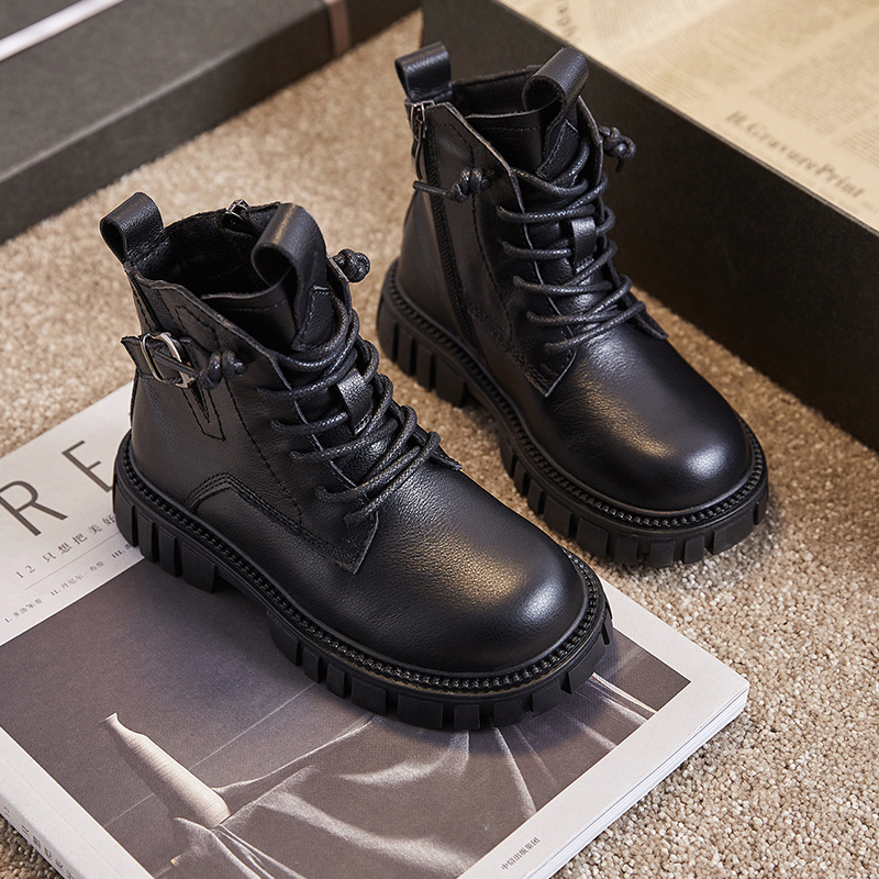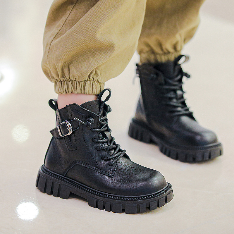 男童靴子2025年秋冬新款 儿童马丁靴 真皮防水单靴中大童加绒二棉鞋