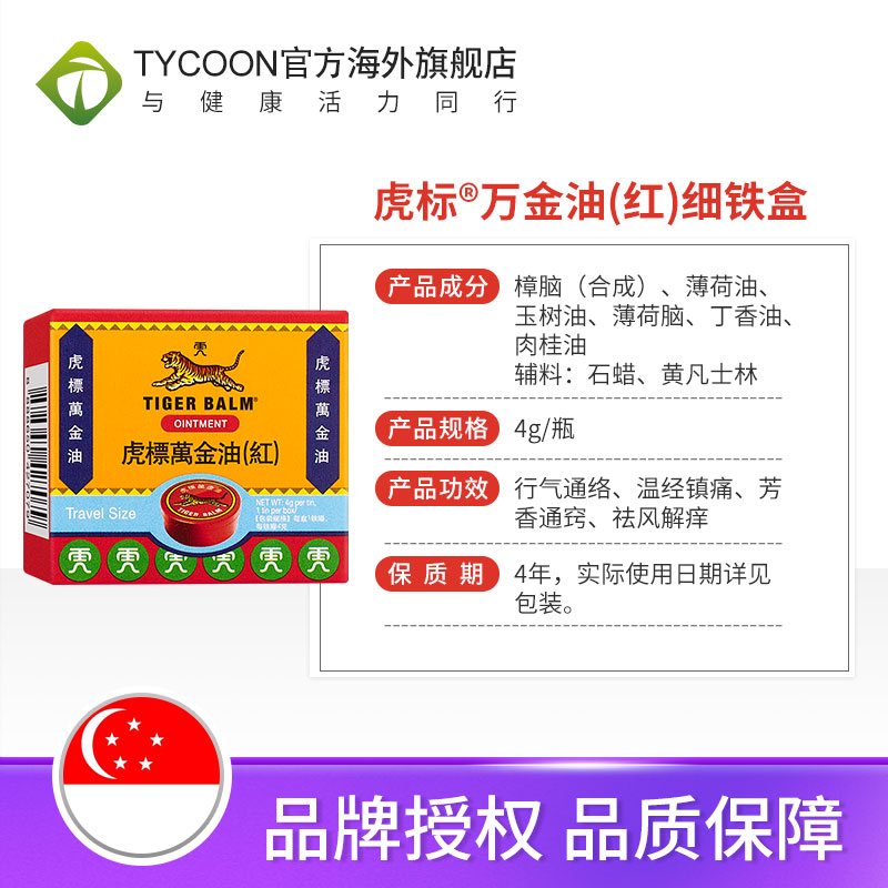 港版 新加坡虎标万金油软膏红4g老虎牌蚊虫叮咬头痛鼻塞