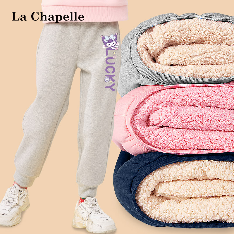 加厚羊羔绒运动裤 拉夏贝尔女童加绒裤 儿童冬装 保暖卫裤 子女孩冬季