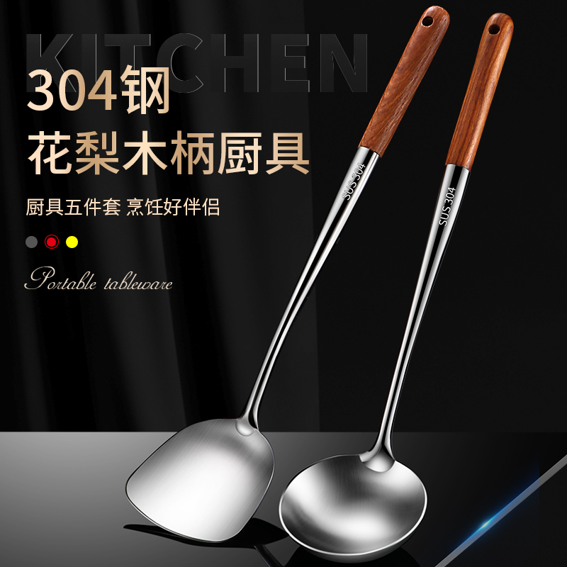 304不锈钢厨具套装 锅铲汤勺家用漏勺厨房铲子炒菜铲长柄厨师炒勺