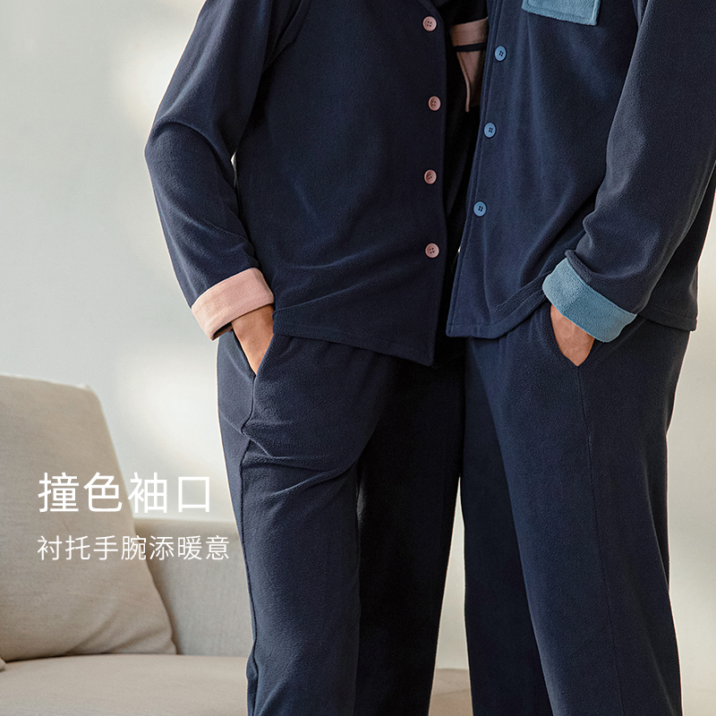 拉链珊瑚绒加绒可外穿情侣家居服女套装 睡衣秋冬男款 双层加厚