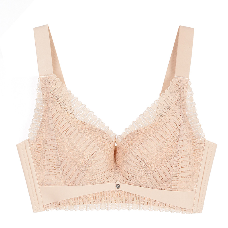 秋鹿文胸女性感蕾丝无钢圈中杯模调整型内衣宽侧比收副乳胸罩