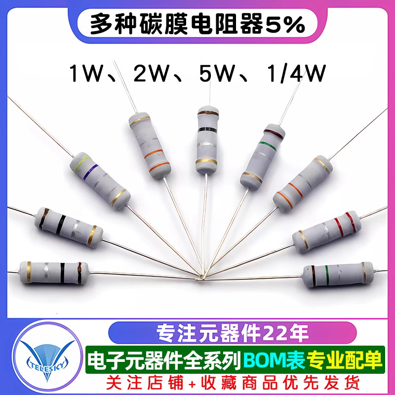 件0.33R 10R 0.22R 0.5R 100R欧姆 0.1R 1W2W5W碳膜5%色环电阻器元