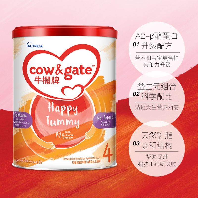Cow&Gate牛栏牌A2 酪蛋白奶粉4段3岁起900g进口罐装 自营
