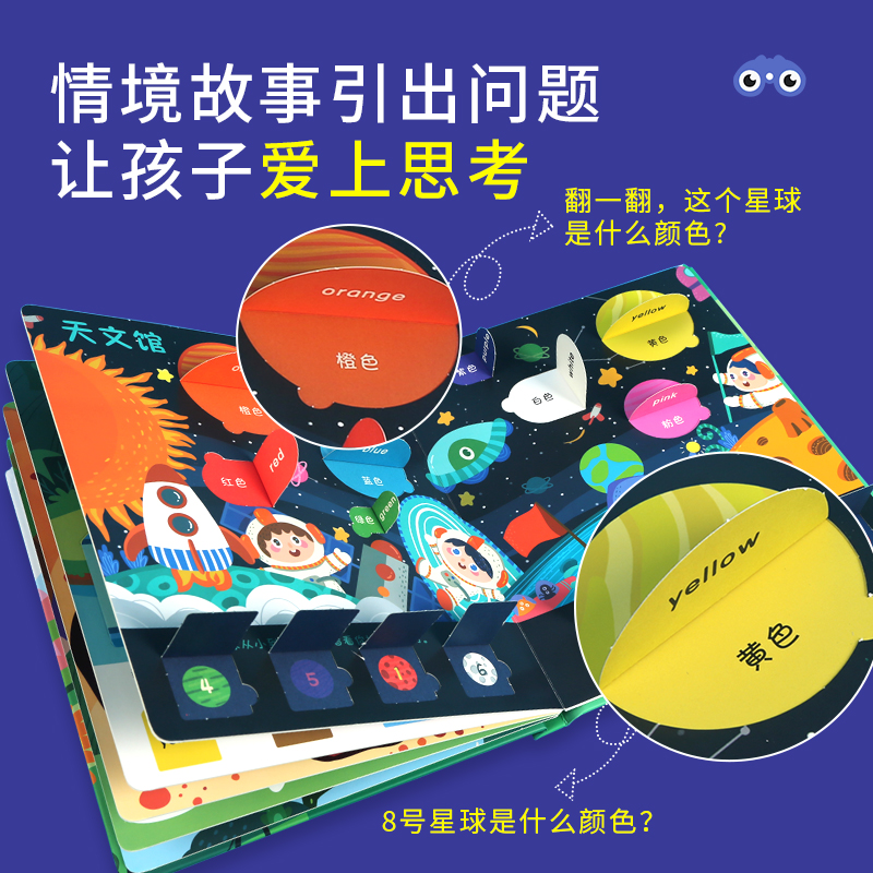 6岁启蒙益智玩具书宝宝一两岁 小眼睛看大世界幼儿园数学英语拼音早教认知硬壳书撕不烂幼儿2 儿童绘本我会认颜色3d立体翻翻书