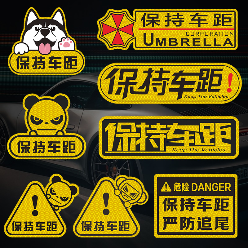 新手上路注意刹车保持车距车贴磁吸搞笑大号磁性贴强反光汽车贴纸