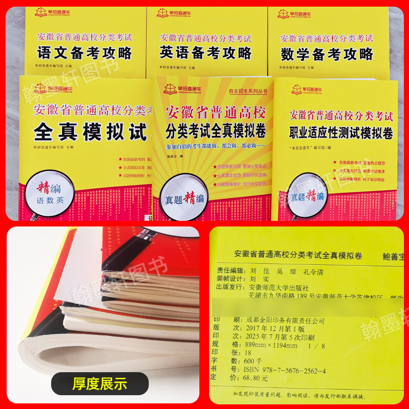 安徽单招考试复习资料2026年语数英职业技能适应性测试校考安徽省分类招生考试试卷模拟高职单招考试真题普通高校招生春季 高考2025