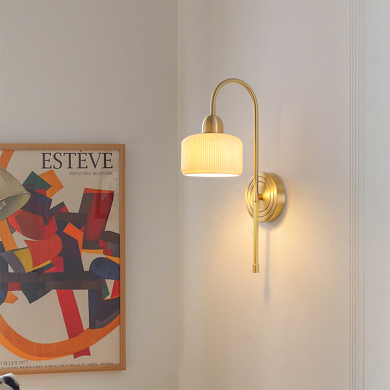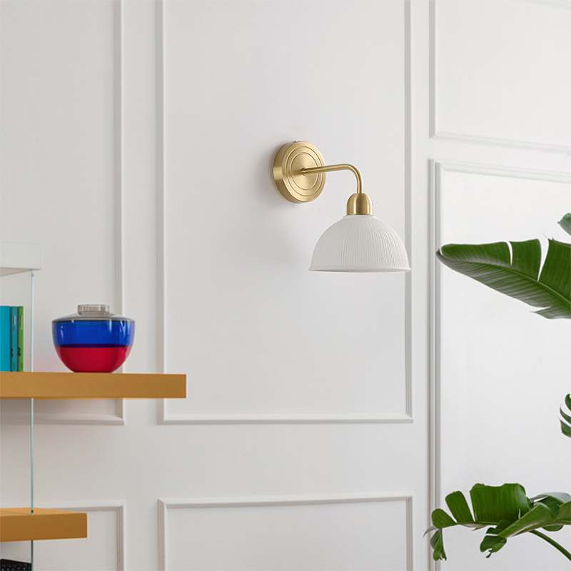 中古奶油风全铜壁灯2022新款 简约卧室床头灯客厅电视过道背景墙灯