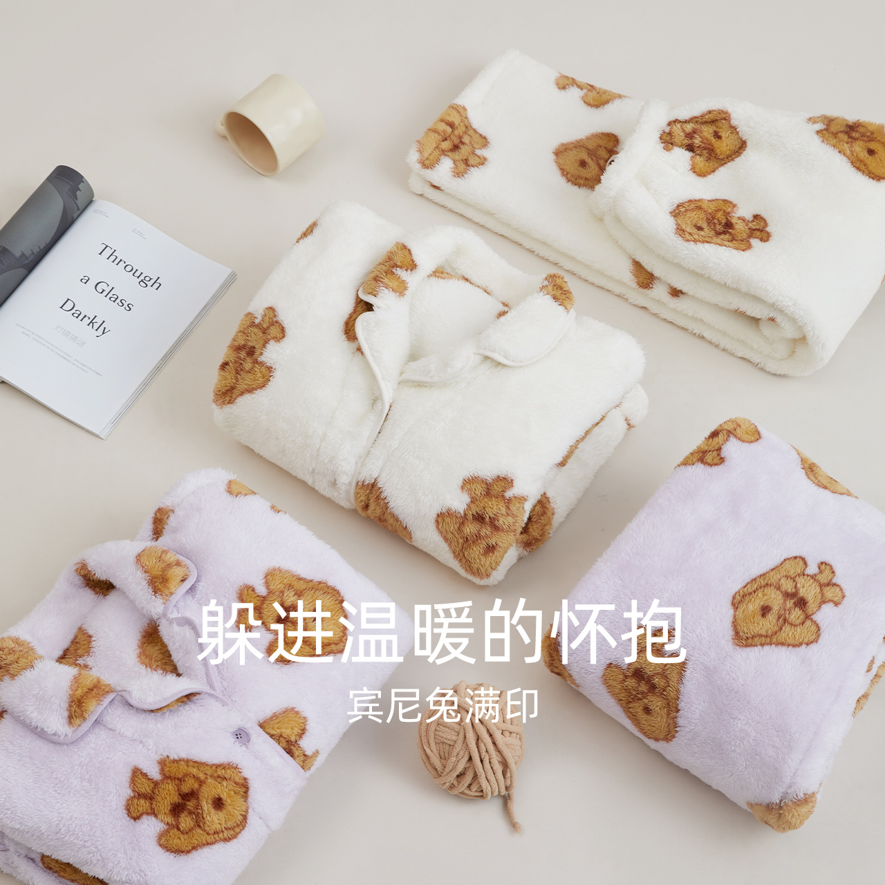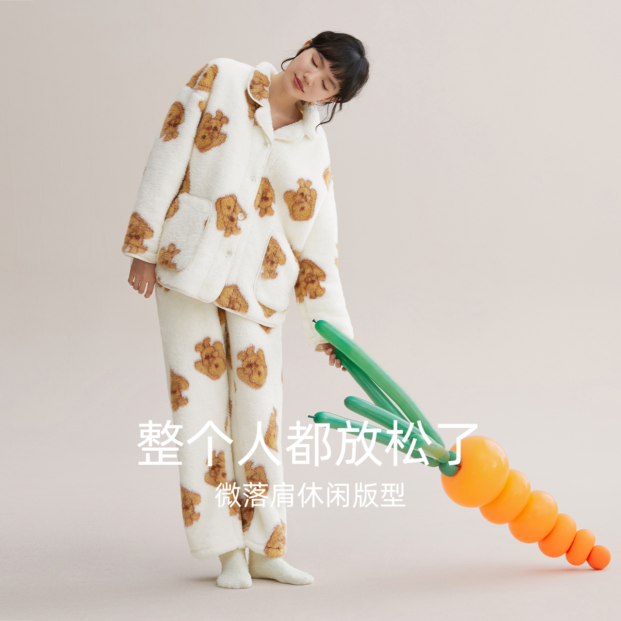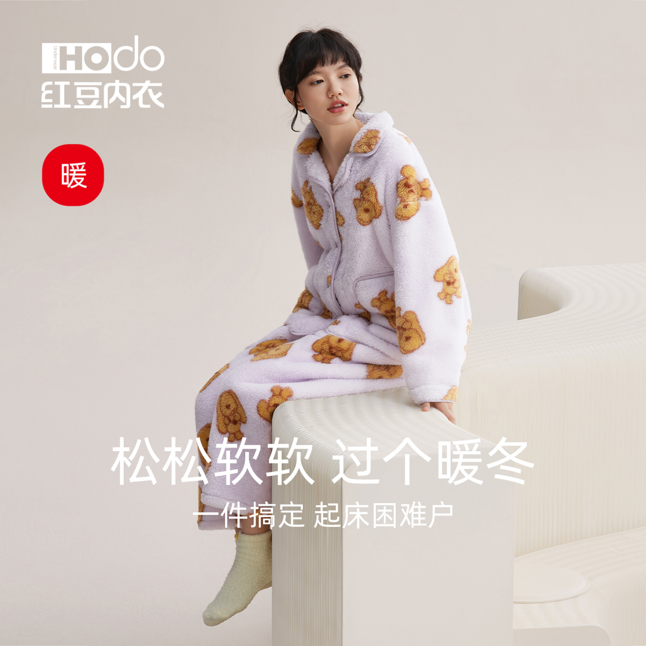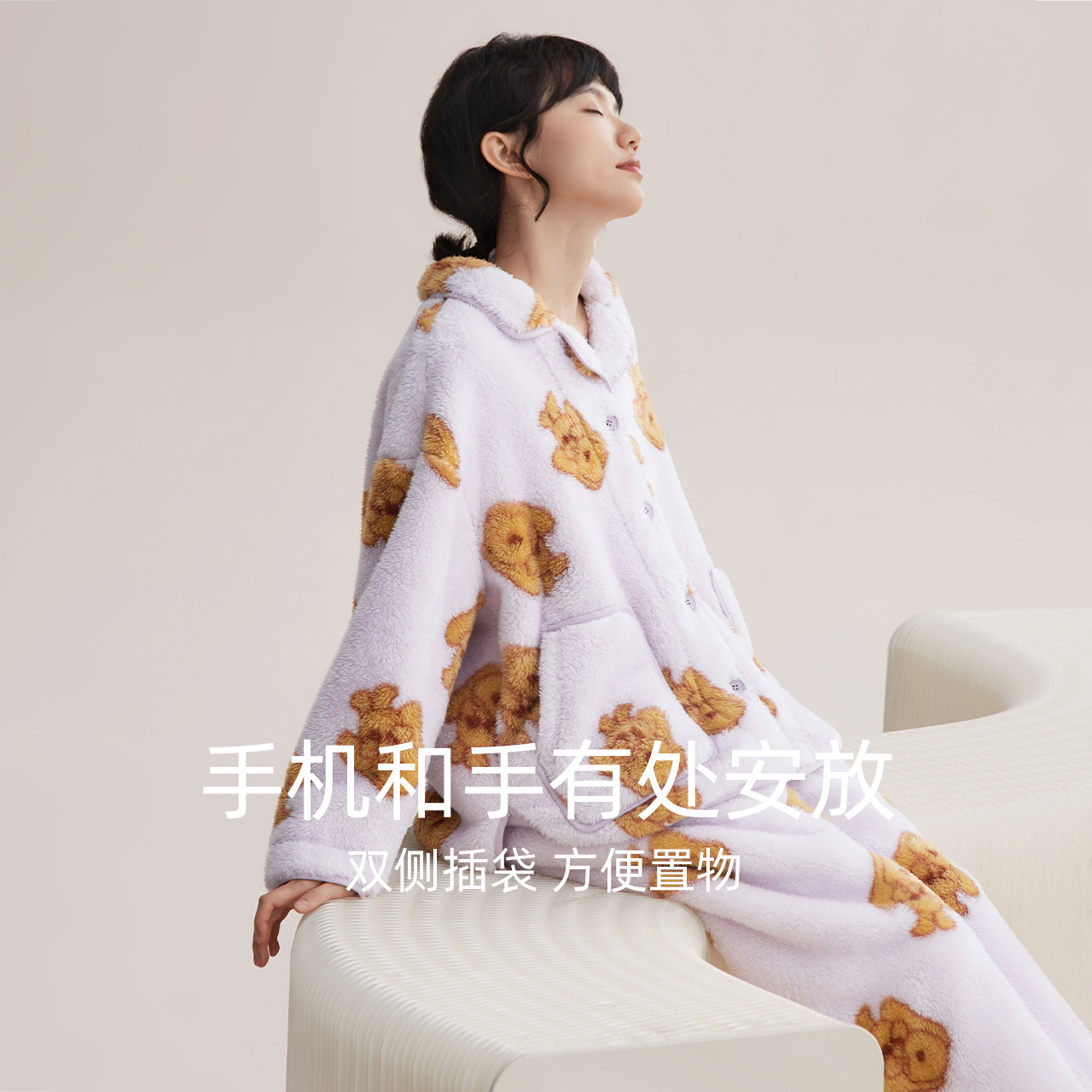 红豆睡衣女士珊瑚绒可爱法兰绒秋冬季 女 加绒加厚可外穿家居服套装