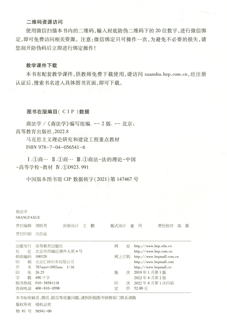 第2版 马工程系列教材 马克思主义理论研究和建设工程重点教材 2022新版 社 第二版 高等教育出版 大学教材 商法学