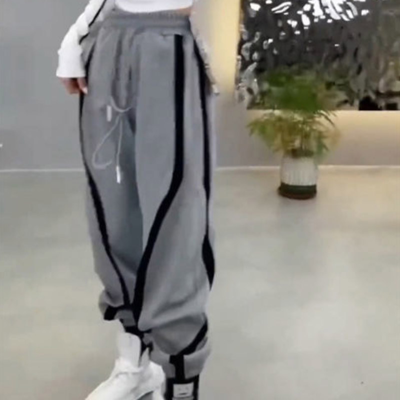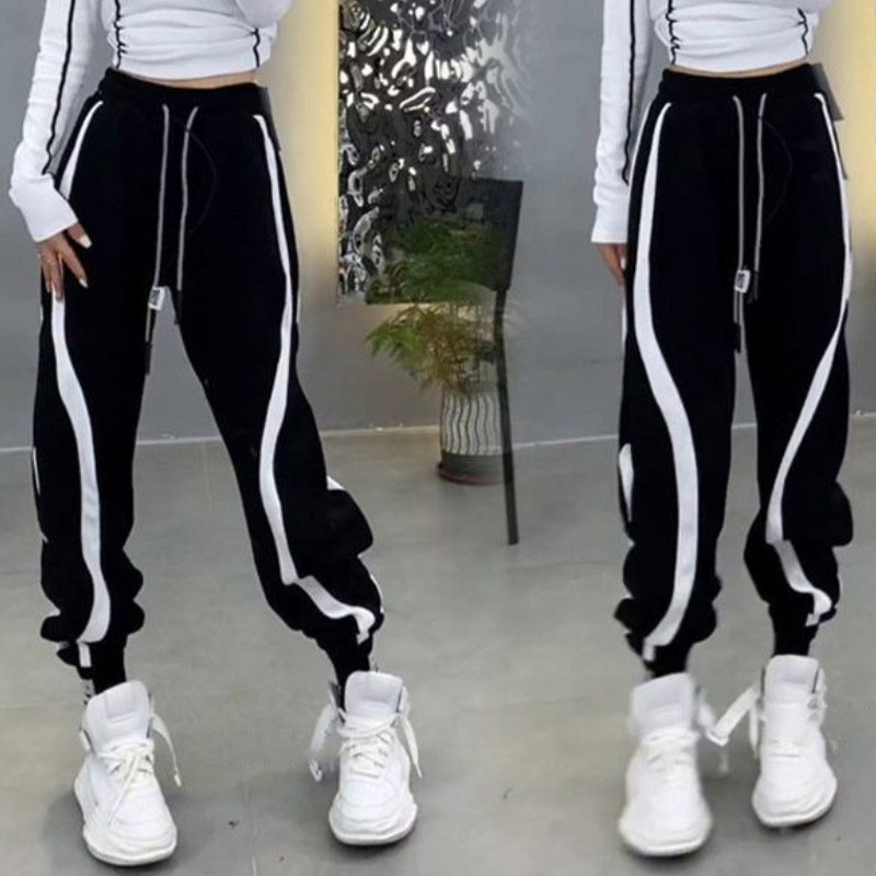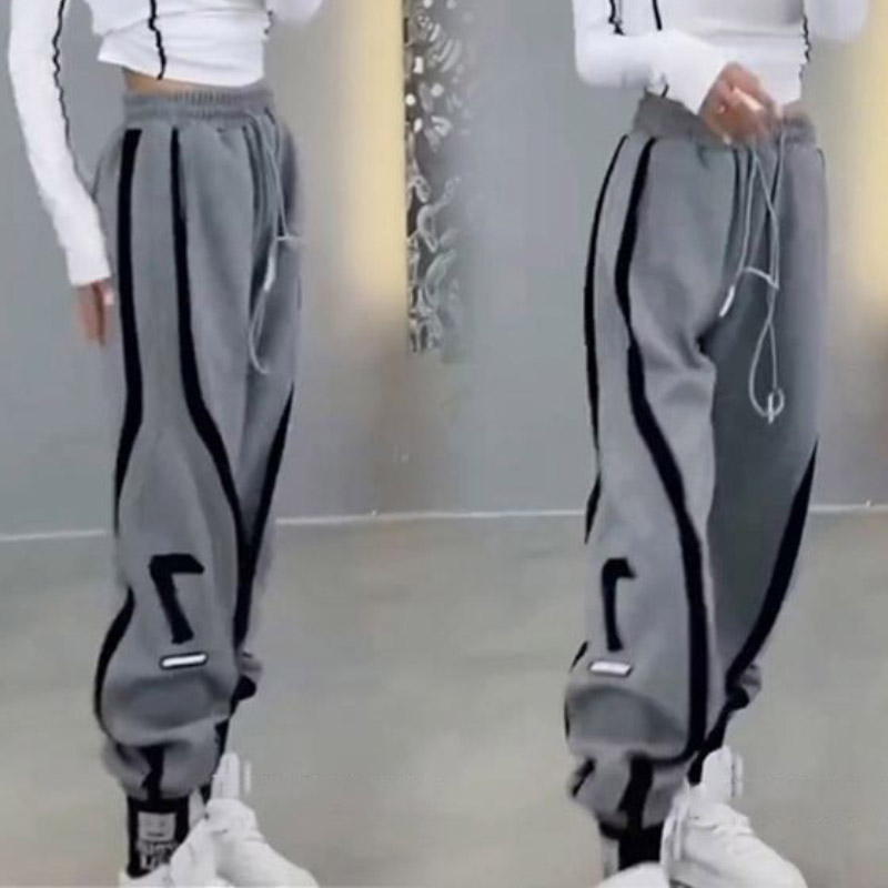 休闲裤 加绒加厚百搭卫裤 韩版 哈伦裤 女 拼接贴标运动裤 2023秋冬新款