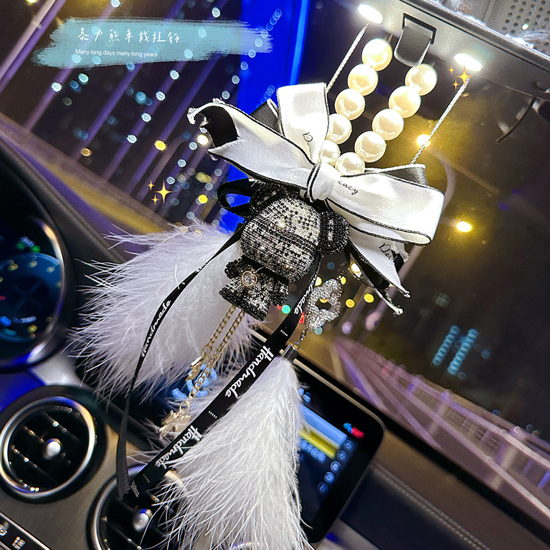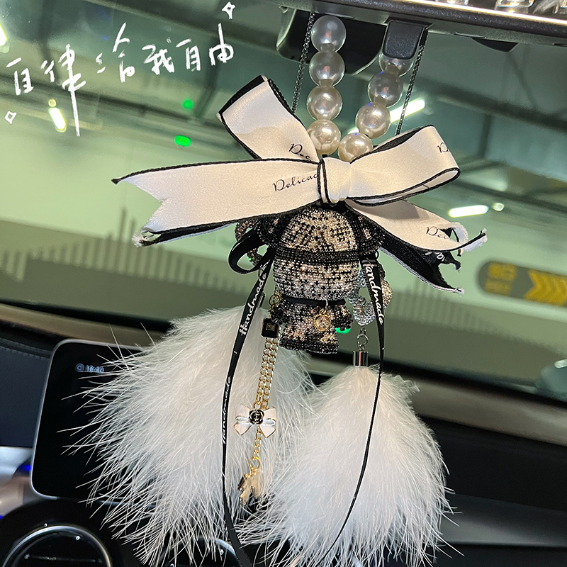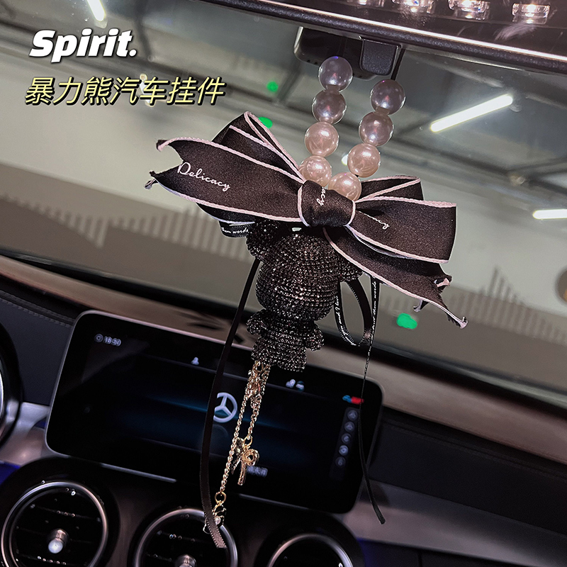 暴力熊车挂ins轻奢简约网红小熊汽车后视镜挂件饰品女镶钻水晶熊