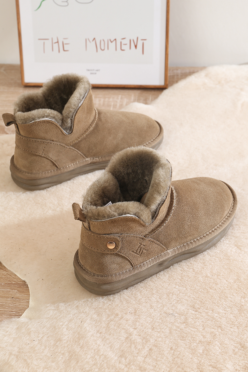 皮毛一体加绒短筒低帮防滑保暖棉鞋 牛皮羊毛雪地靴女2025新款 冬季
