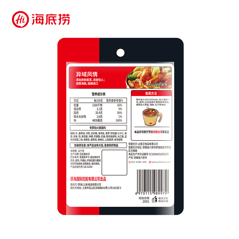 海底捞火锅底料泰式 冬阴功酸辣鲜爽煮海鲜冬荫功酸辣去腥涮肉汤底