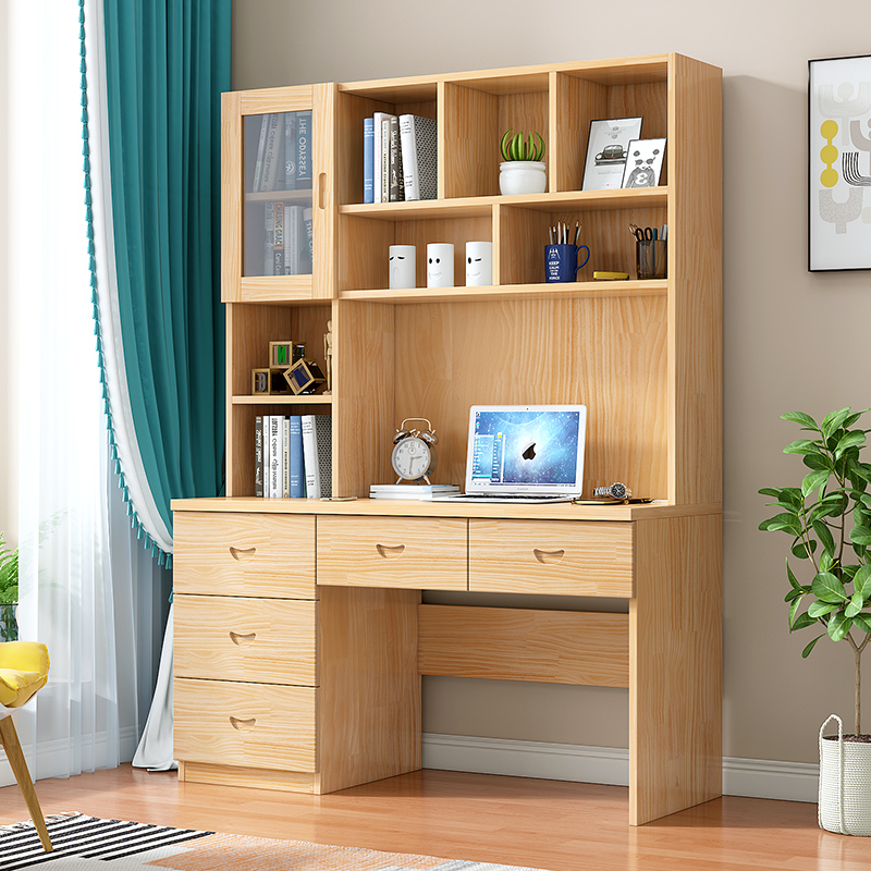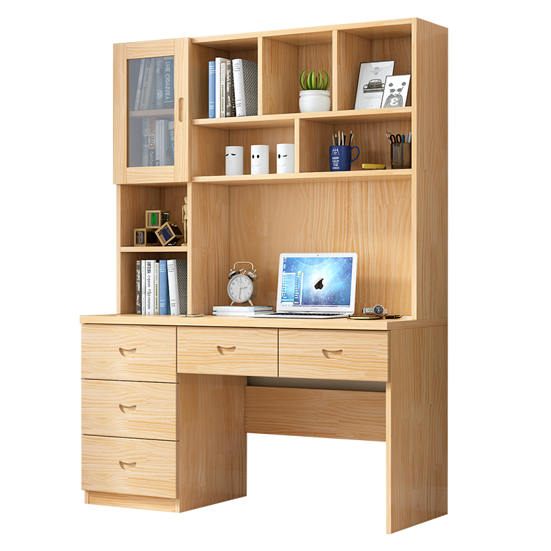 松木书桌书架书柜一体组合儿童学习桌直角写字实木电脑桌