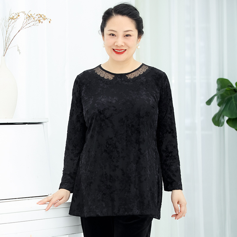 上衣打底套头衫 胖太太大码 蕾丝拼接长袖 春秋新品 潮822301711 女装