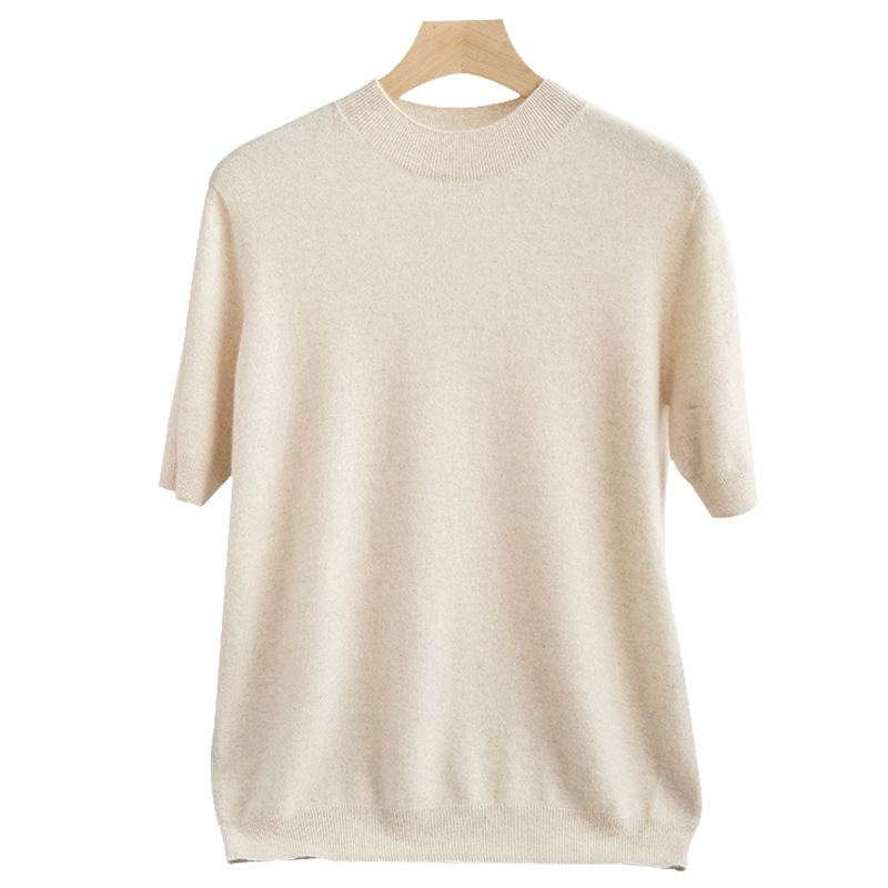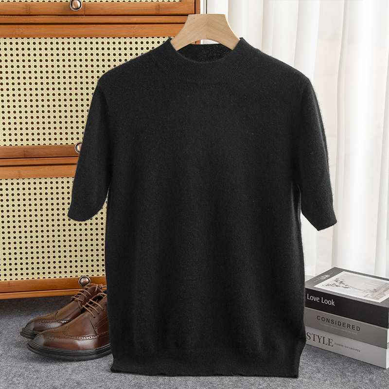毛衣体恤衫 半高领短袖 羊毛半袖 秋冬针织打底衫 T恤男100纯山羊绒衫