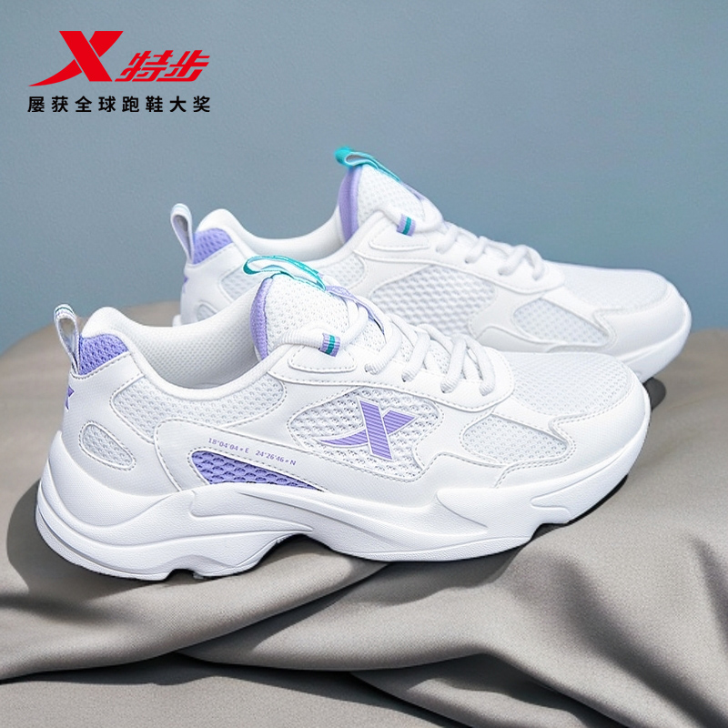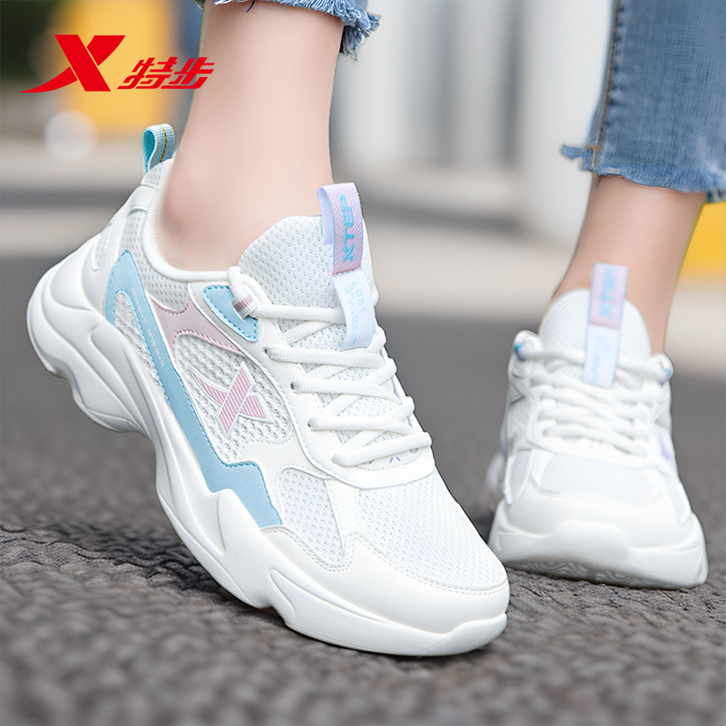 女秋冬老爹鞋 官方网面透气运动鞋 休闲鞋 子女款 特步女鞋 跑步鞋 正品