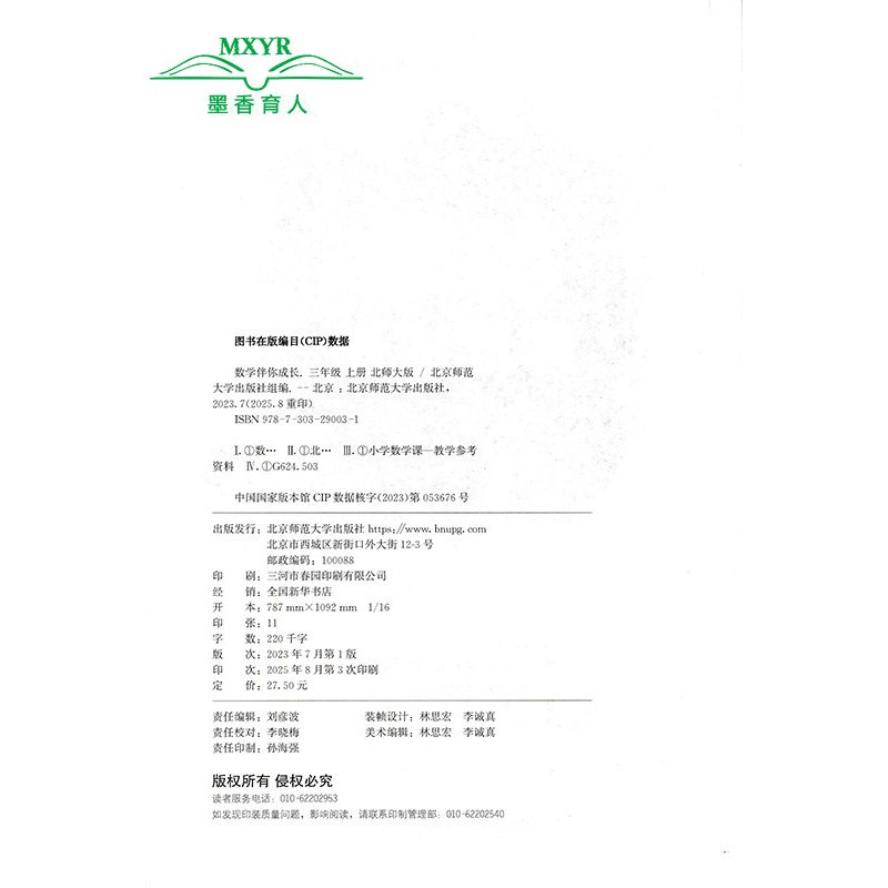 三年级上册数学伴你成长 与北师版 课本教材教科书同步 2025秋 社 小学3 北京师范大学出版 小学数学三年级上册 北师大版