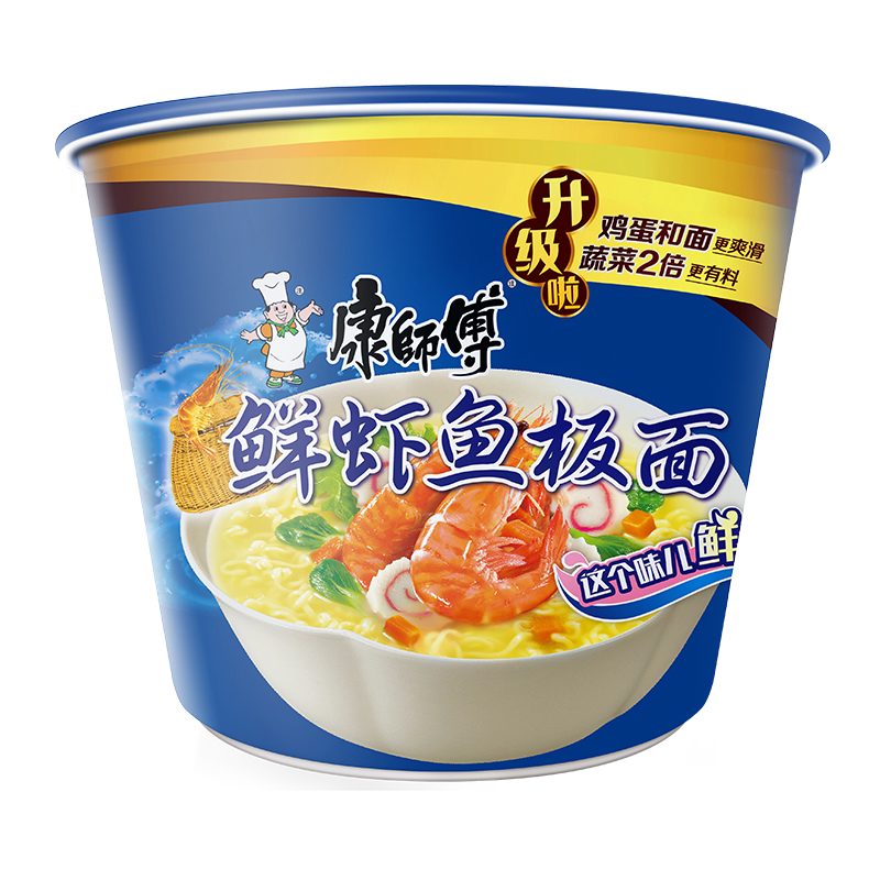 康师傅鲜虾鱼板面12桶装 整箱方便面速食食品泡面批发早餐夜宵代餐