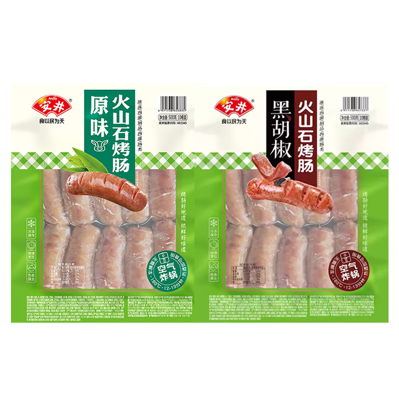 安井火山石烤肠500g台湾地道原味黑胡椒烧烤肠肉肠台式 香肠热狗肠