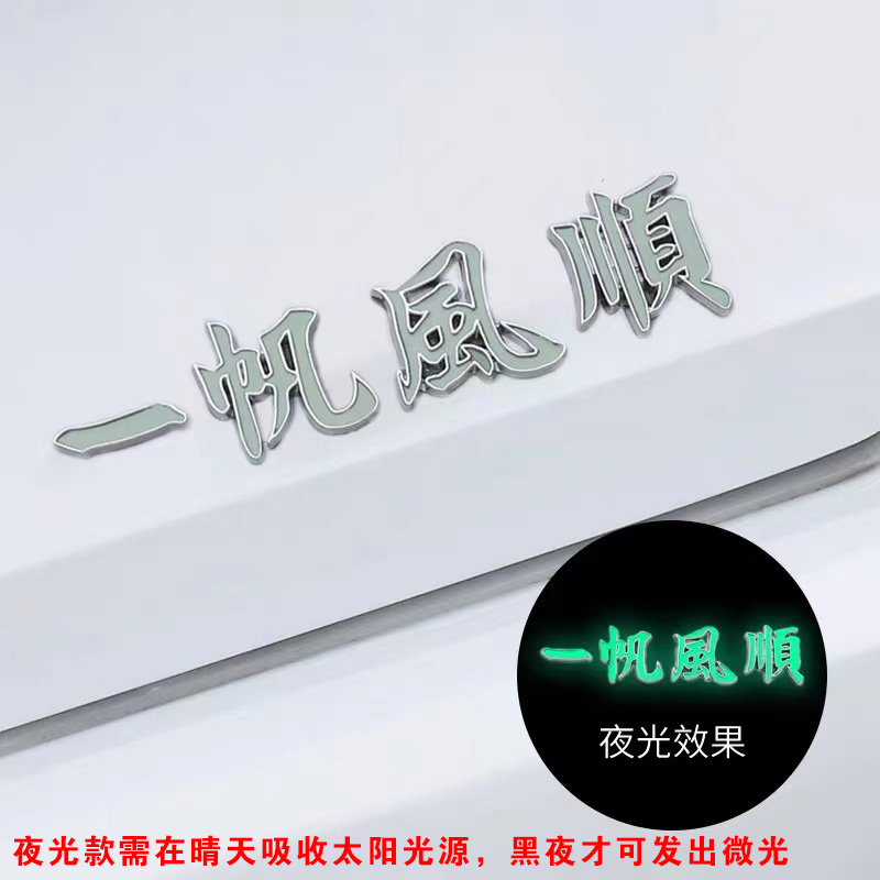一路平安出入平安一帆风顺前程似锦文字尾标夜光金属汽车标装 饰帖