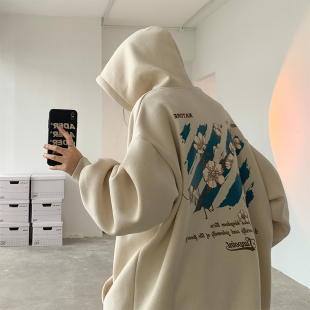 大码 重磅500克印花情侣外套潮 300斤麂皮绒连帽卫衣男女秋冬加绒款