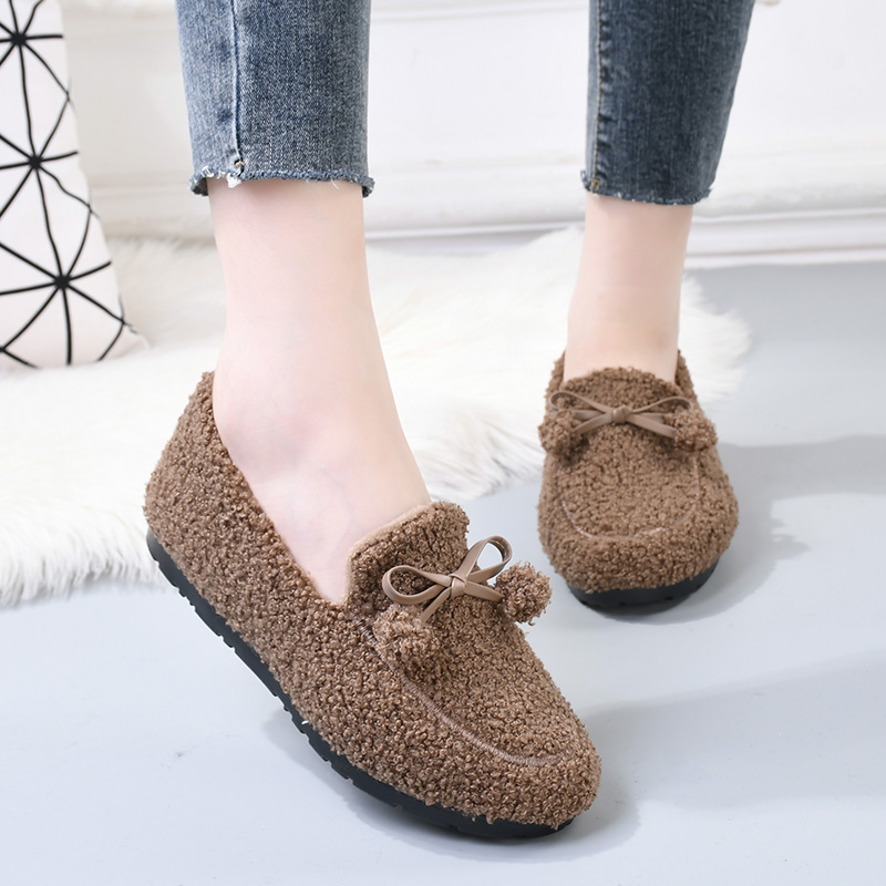 加绒保暖豆豆鞋 妈妈棉鞋 女 女外穿防滑软底老北京布鞋 秋冬毛毛鞋