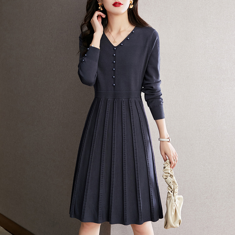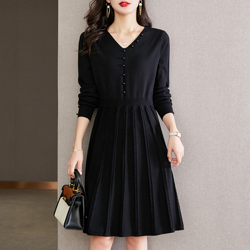 含绵羊毛桑蚕丝拼接中长裙法式 新款 温柔风 Moda连衣裙25秋季 Vero