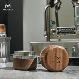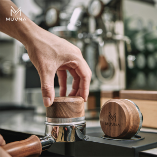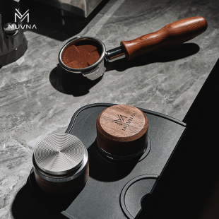 MUVNA咖啡手柄布粉器304不锈钢可调节胡桃木螺纹压粉器51 58mm