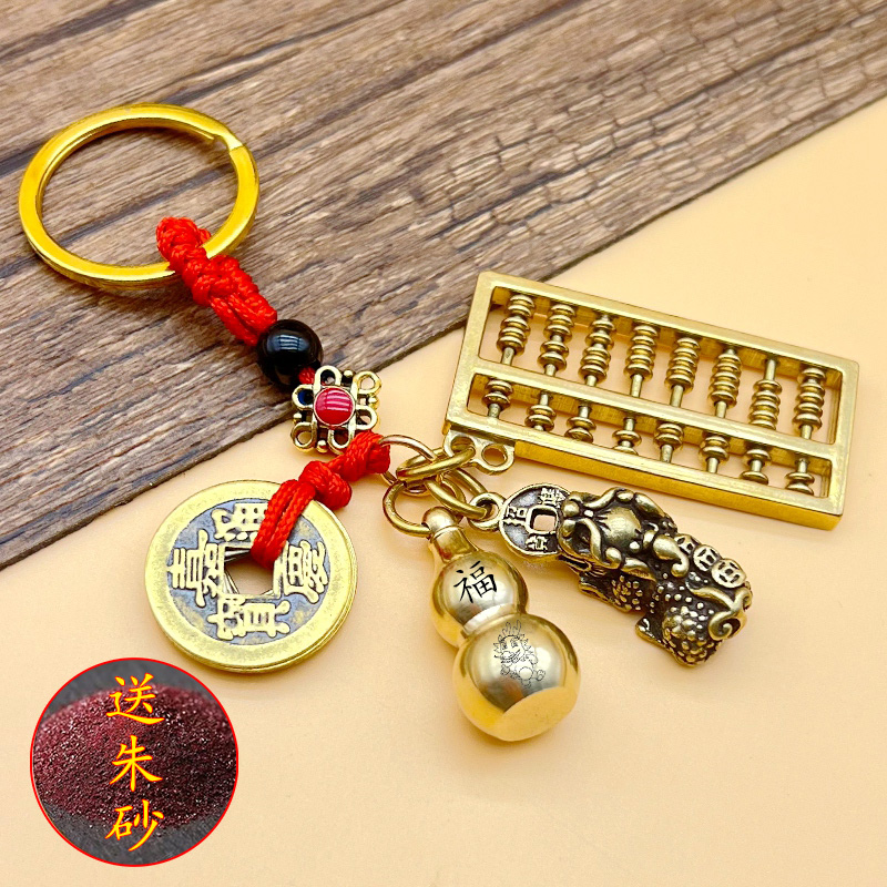 黄铜活动算盘钥匙扣汽车挂件黄金万两招财貔貅十二生肖钥匙链挂饰