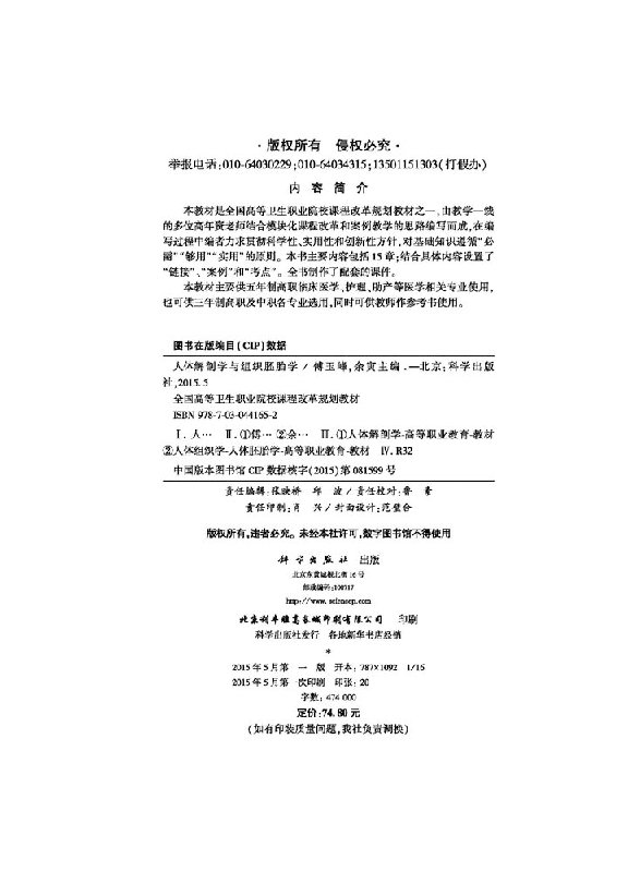 人体解剖学与组织胚胎学 傅玉峰 五年制高职