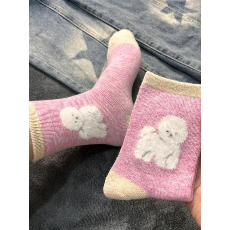 秋冬加厚袜子德绒蕾丝花边短袜女士镂空保暖防滑硅胶船袜蕾丝边