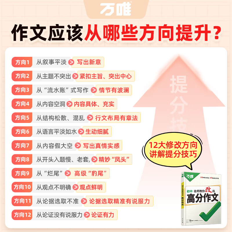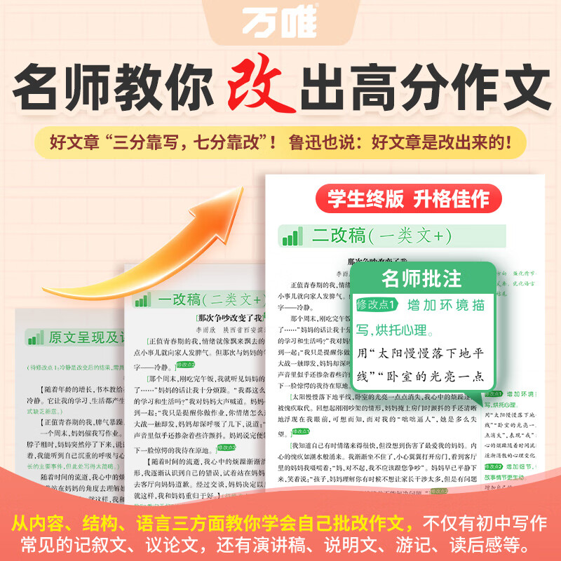 2026万唯初中名师教你改出高分作文 中考语文满分作文初中作文高分技法提分技巧初一二三七八九年级通用写作模板与指导辅导资料书