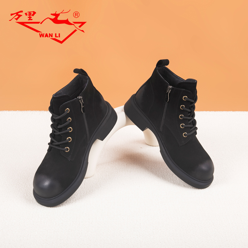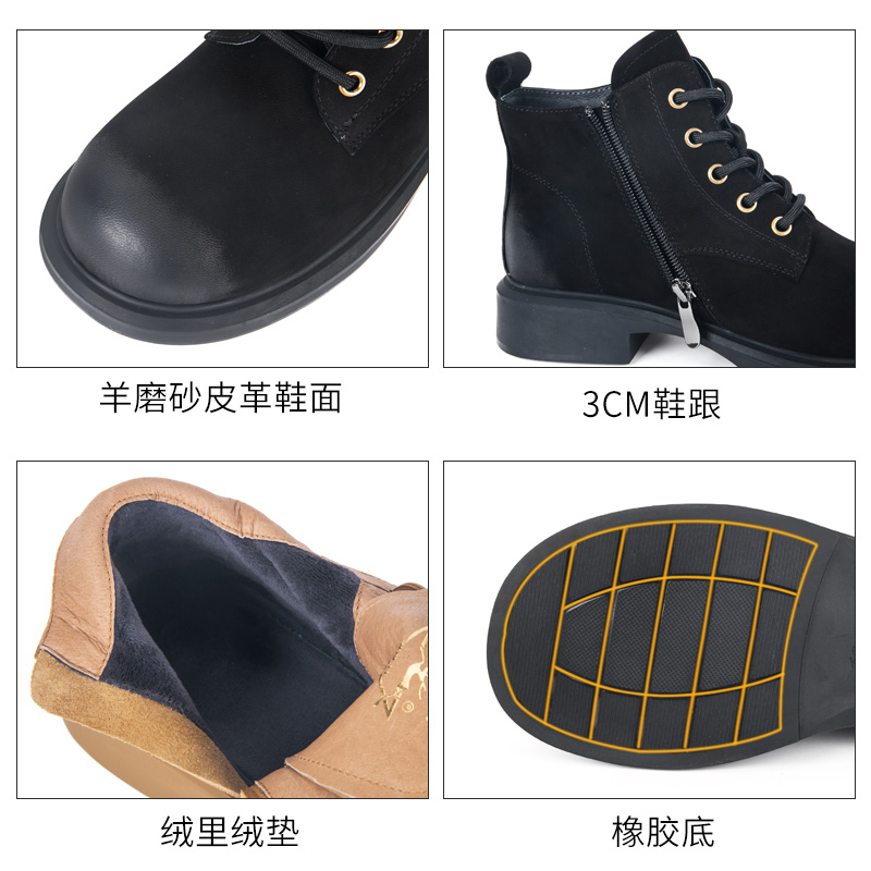 皮面短靴 黑色增高靴子女时尚 环球加绒厚底马丁靴女款 2025秋冬新款