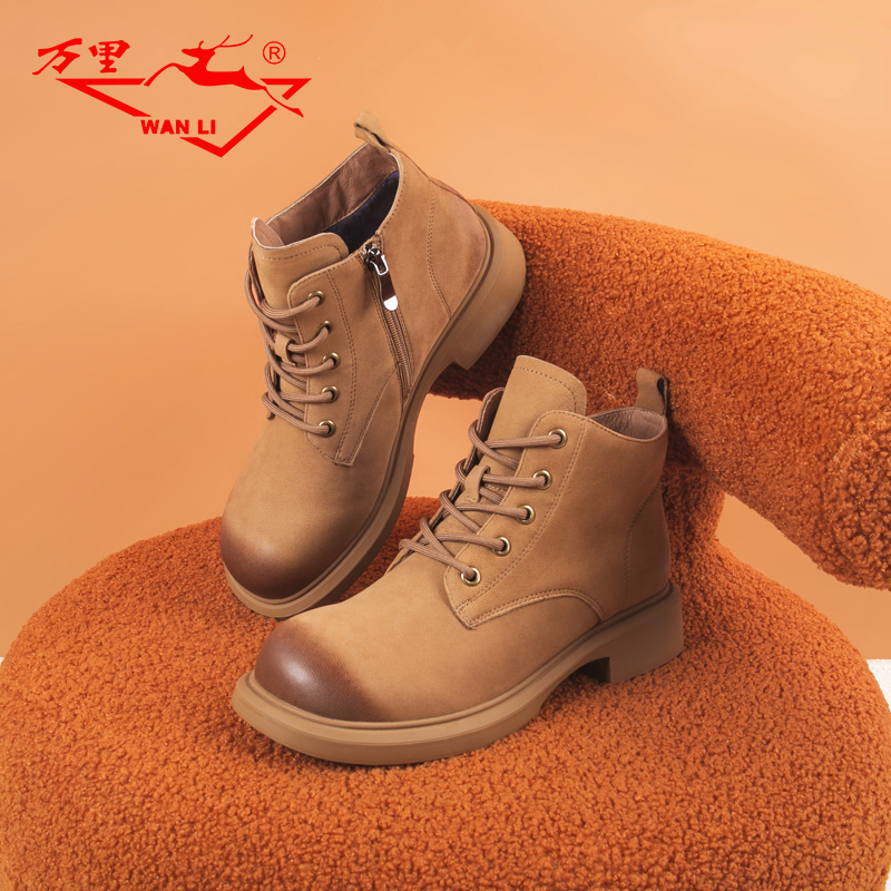 真皮厚底马丁靴女2025冬新款 棕色短靴复古户外徒步旅游登山沙漠靴
