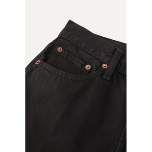 Done 女复古仿旧黑色毛边宽松高腰牛仔裤 抢先购
