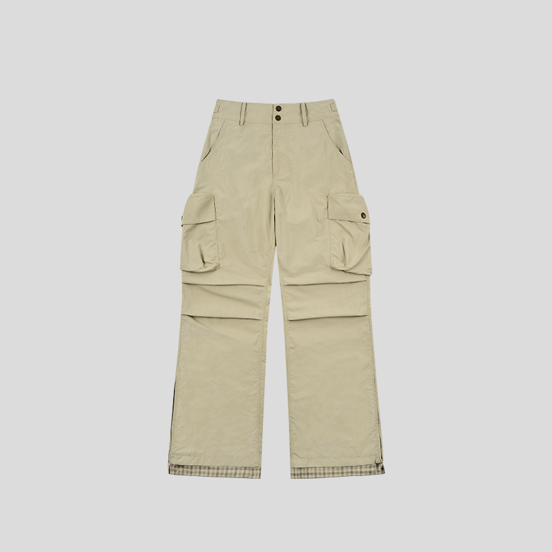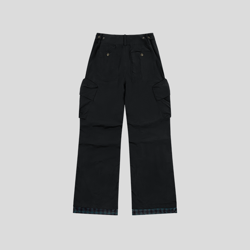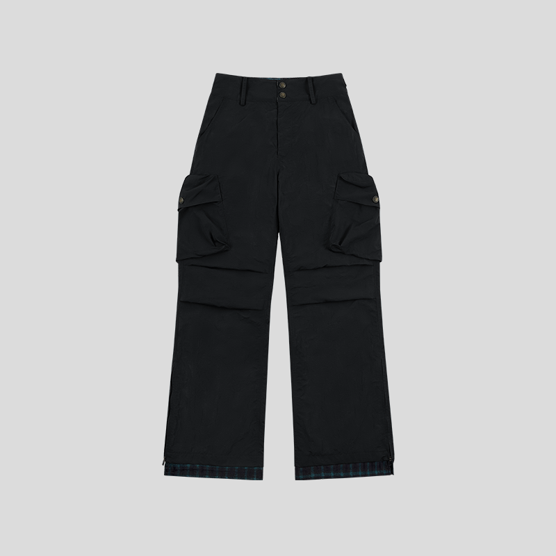 GOODBAI 多口袋微喇拼接高腰休闲裤