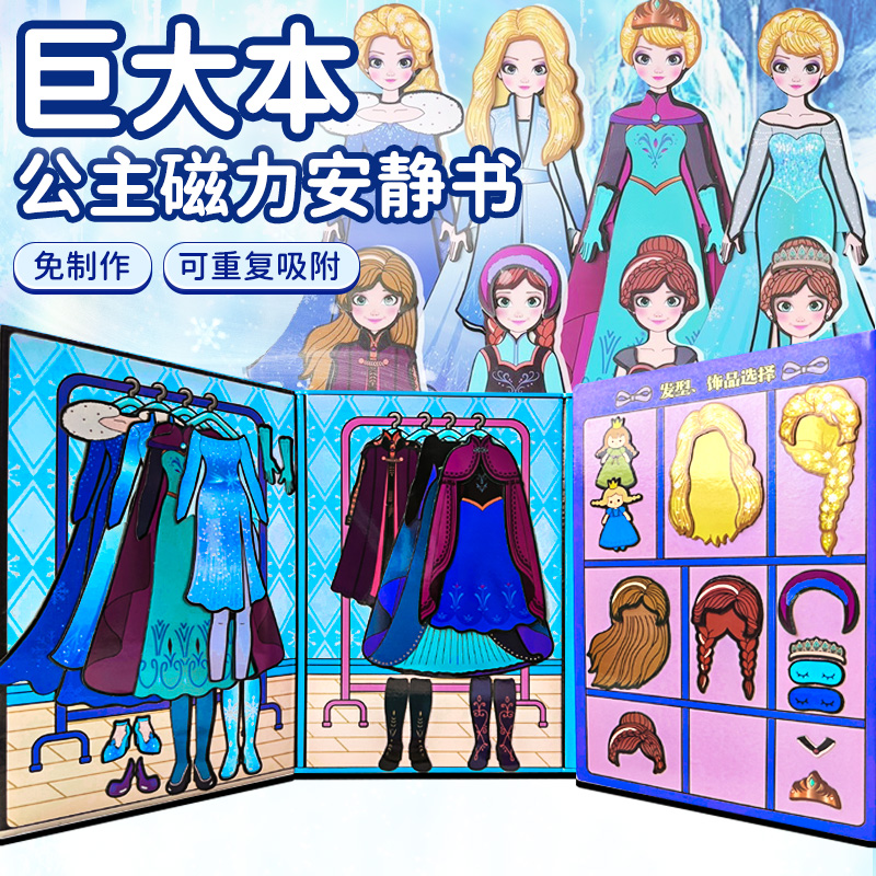 冰雪城堡爱艾莎公主磁力安静书新款 儿童玩具贴纸 女孩大本公主换装