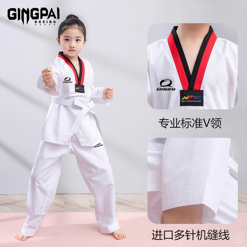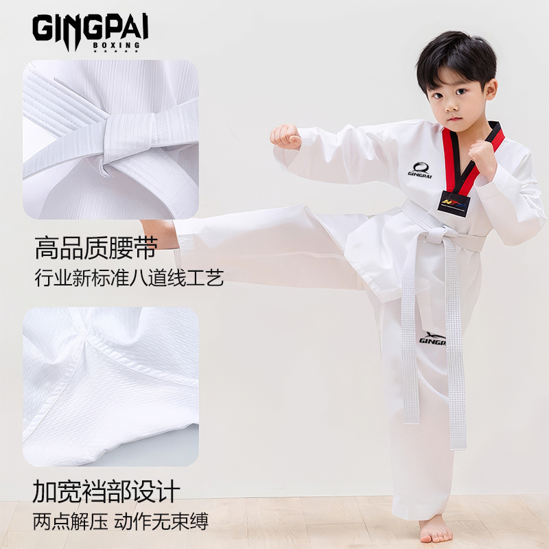 跆拳道服长袖 纯棉男女儿童成人训练赛事服春秋冬道馆用可定制
