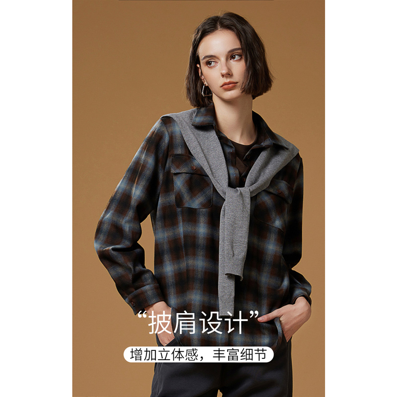 女士百搭复古休闲格子衬衣2025年秋冬新款 IVYKKI艾维时尚 披肩衬衫