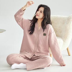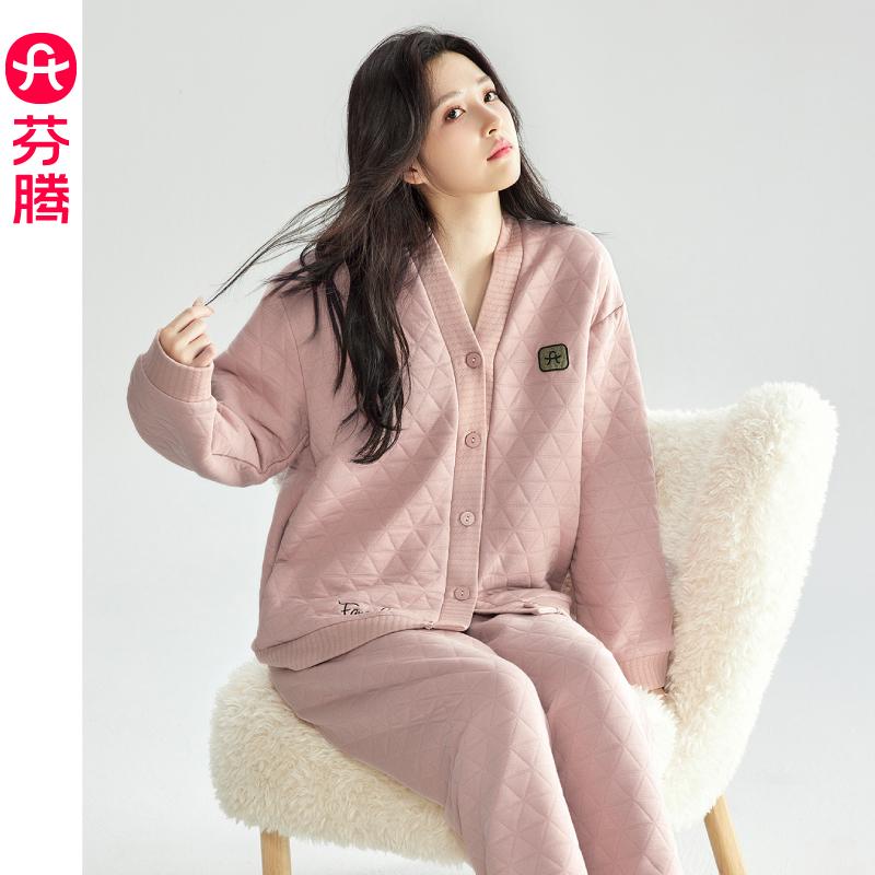 家居服套装 芬腾夹层睡衣女秋冬季 夹棉保暖空气棉冬款 薄款 纯棉长袖