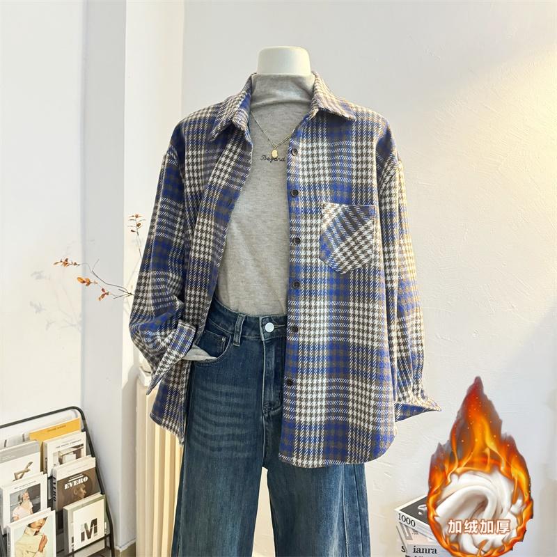 加绒加厚百搭高级感痞帅初中生 外套男春秋新款 青少年牛仔长袖 衬衫